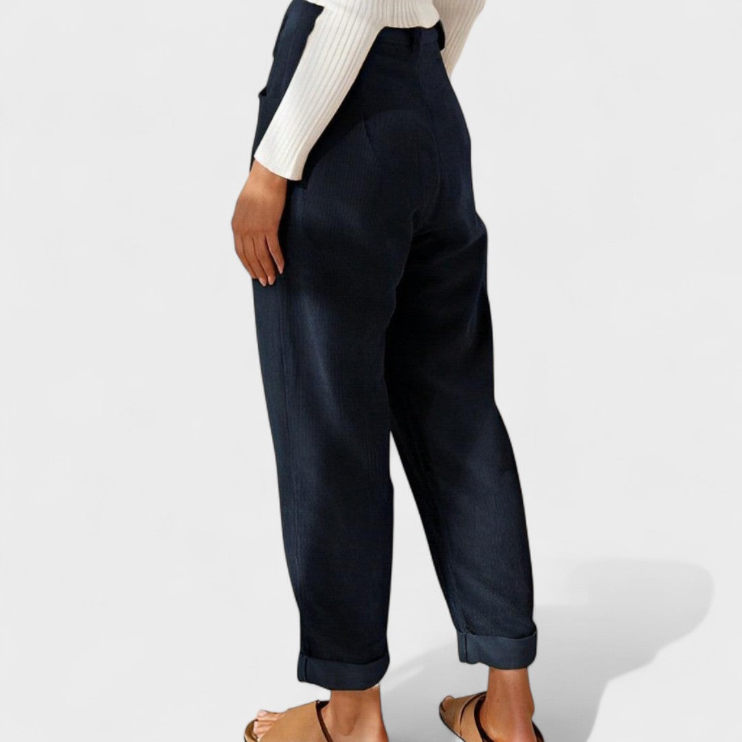 Estas calças foram criadas para quem valoriza o conforto sem abdicar do estilo. Feitas num tecido macio e com um corte descontraído, oferecem liberdade de movimento e um visual moderno, perfeito para o dia a dia.