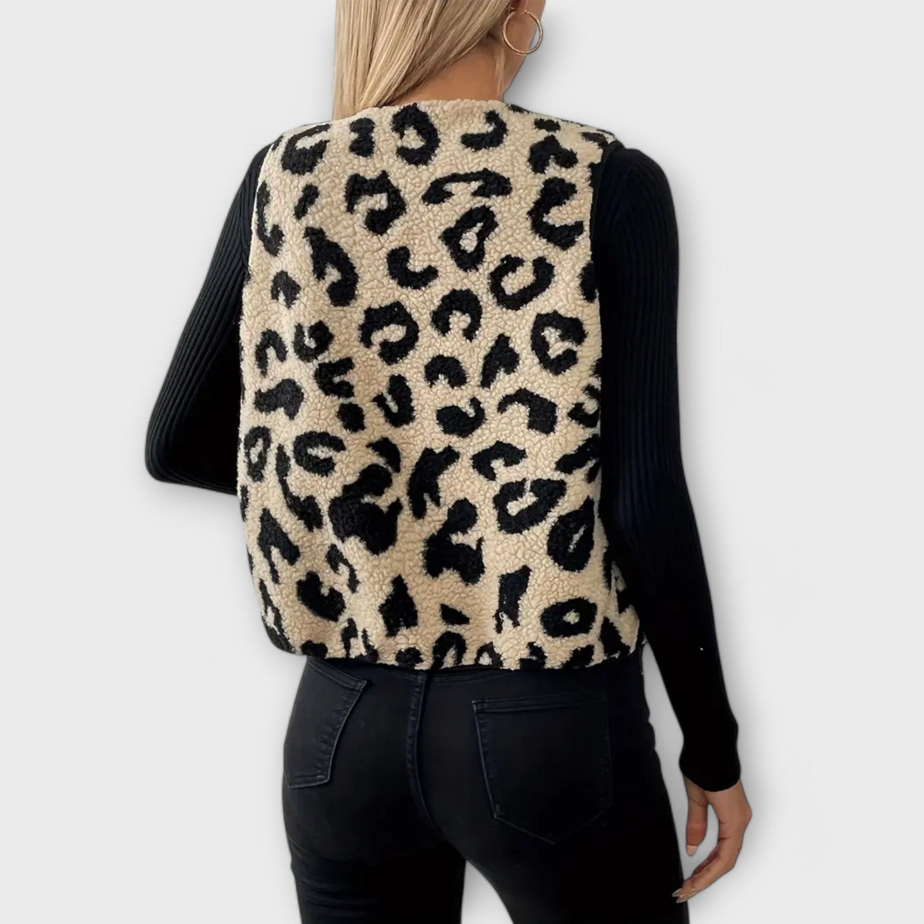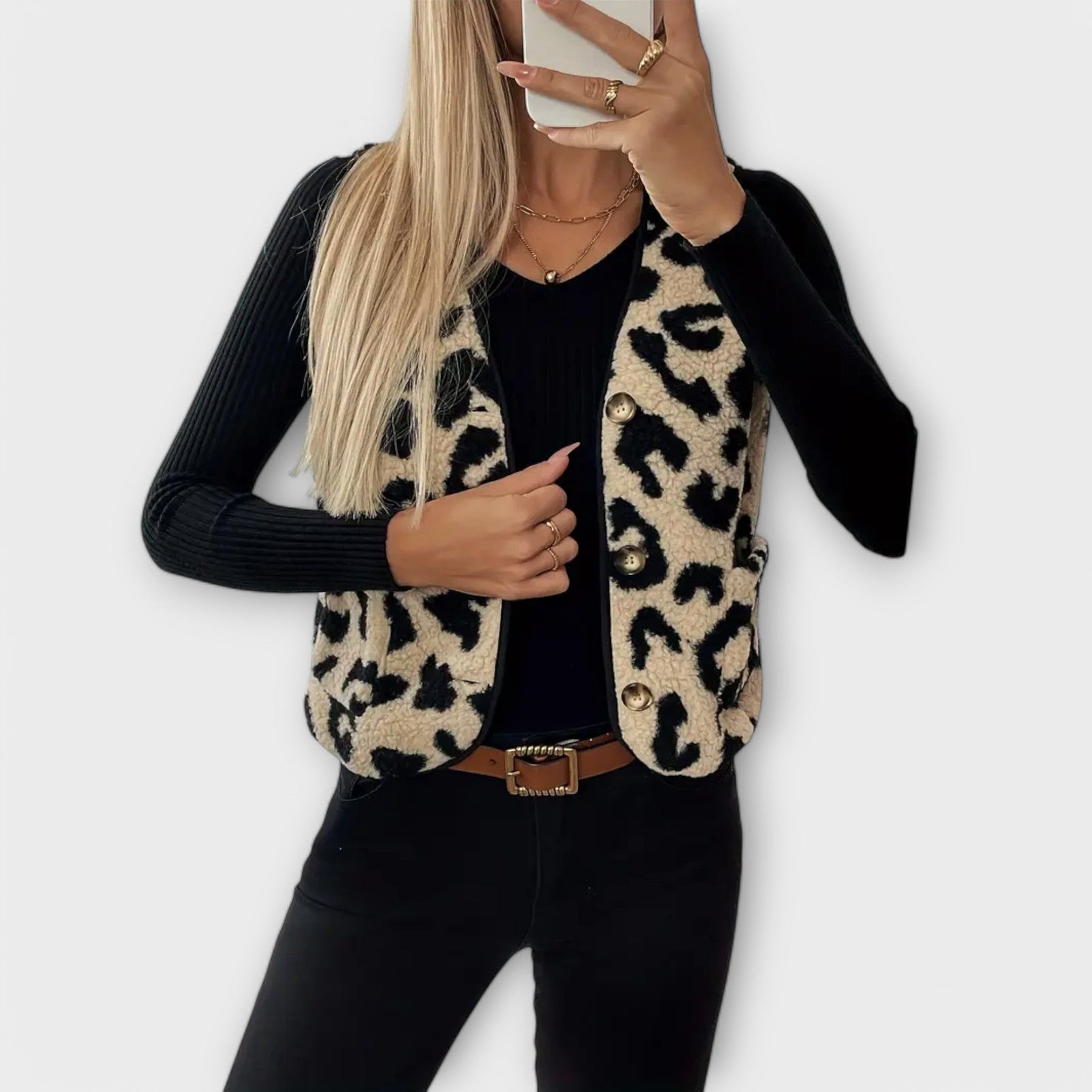 O Clara é um colete elegante com estampa de leopardo, perfeito para adicionar um toque de ousadia e estilo ao seu guarda-roupa. Ideal para criar looks modernos e sofisticados, sem esforço.