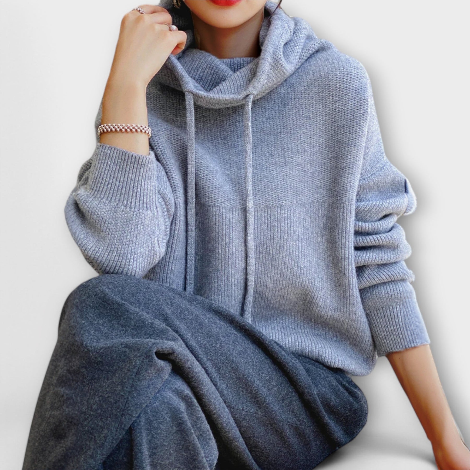 A Hannah é uma sweatshirt de malha com capuz, perfeita para quem busca conforto e estilo sem esforço. Ideal para os dias mais frescos, combina bem com looks casuais ou desportivos.