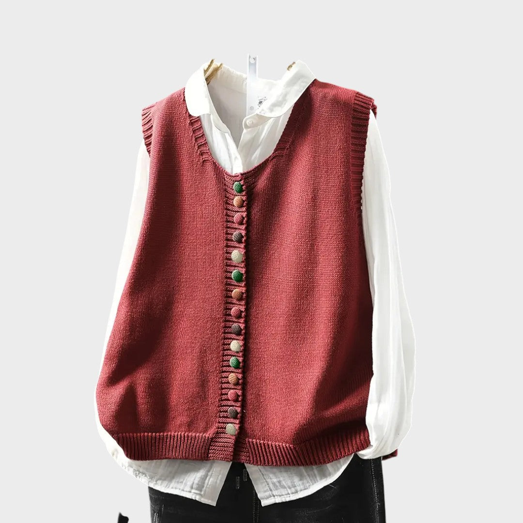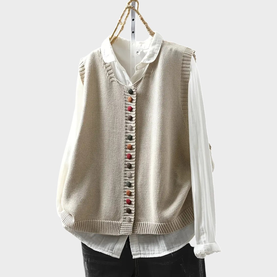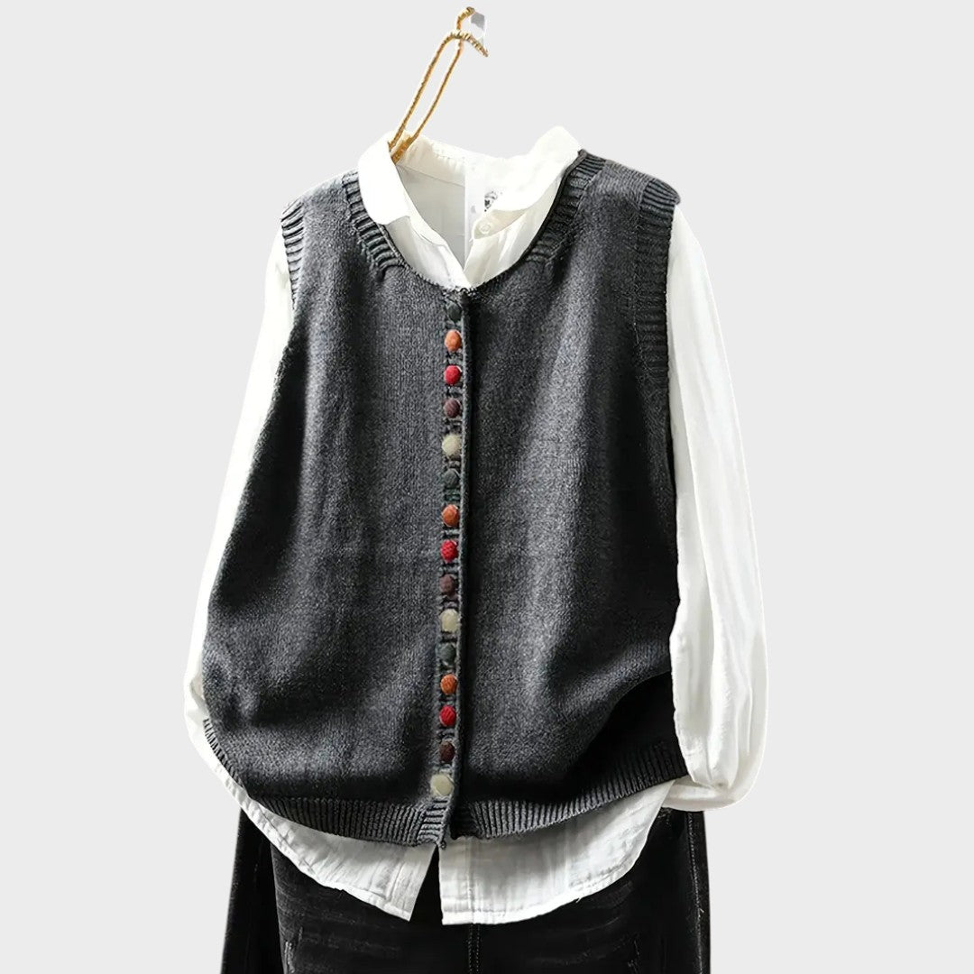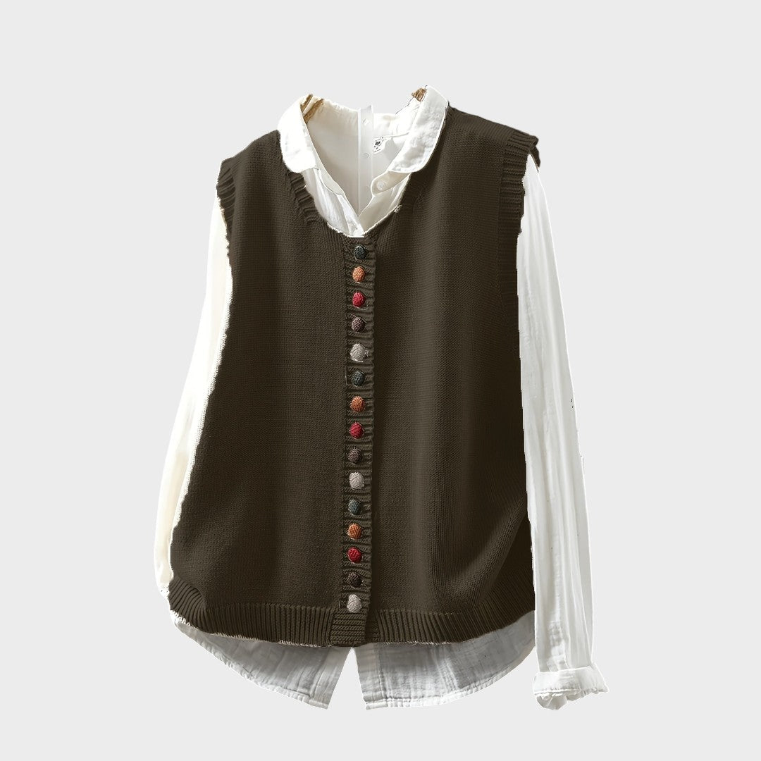Este colete de malha é a peça perfeita para dar um toque criativo e aconchegante a qualquer look. O detalhe dos botões coloridos acrescenta personalidade e leveza, tornando-o ideal para conjugar com camisas, blusas ou até vestidos.