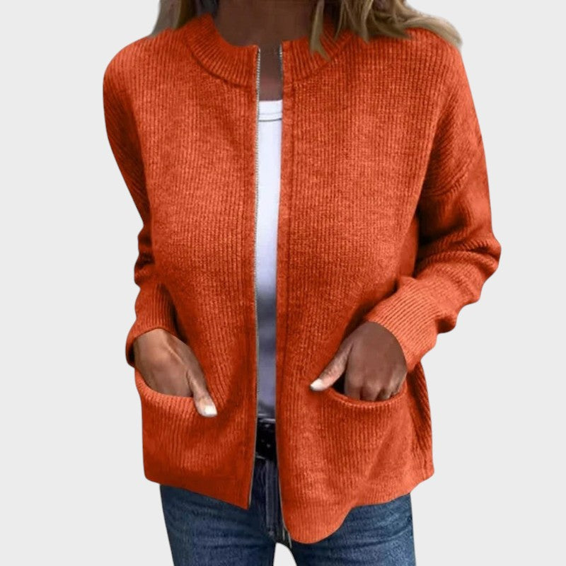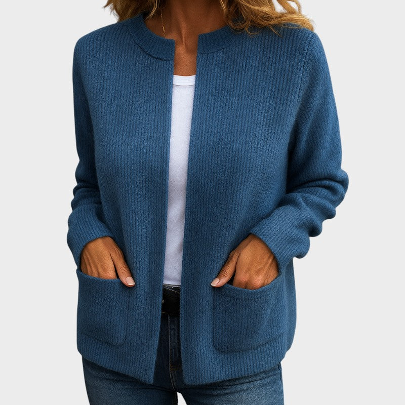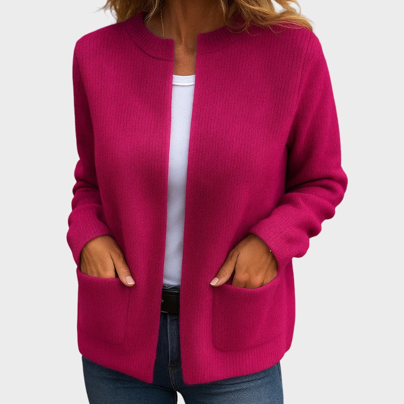 Este casaco combina elegância e praticidade num design versátil, perfeito para qualquer ocasião. Feito em malha macia e de toque aconchegante, oferece um caimento descontraído que valoriza o seu estilo sem perder conforto.