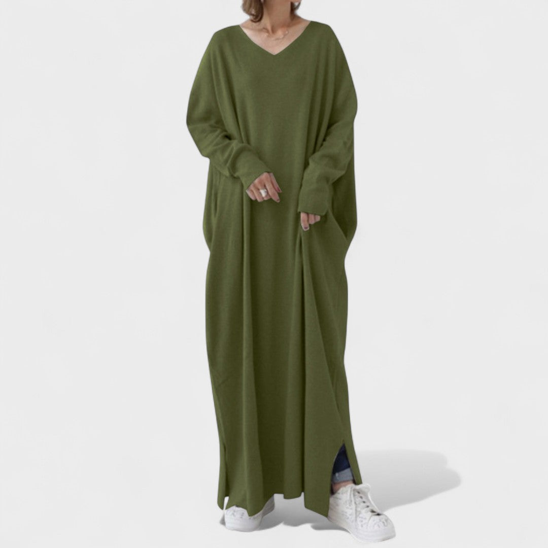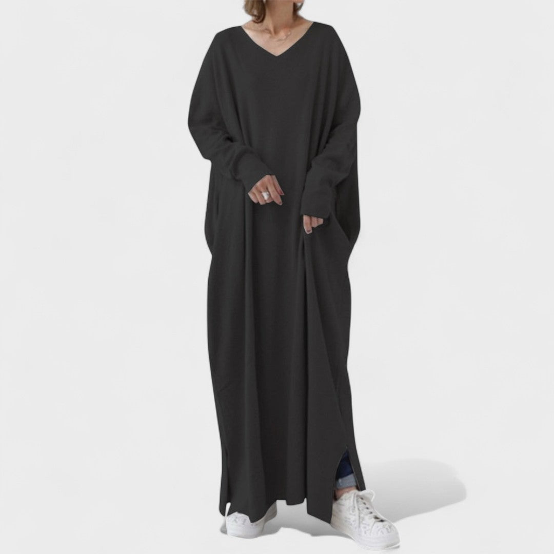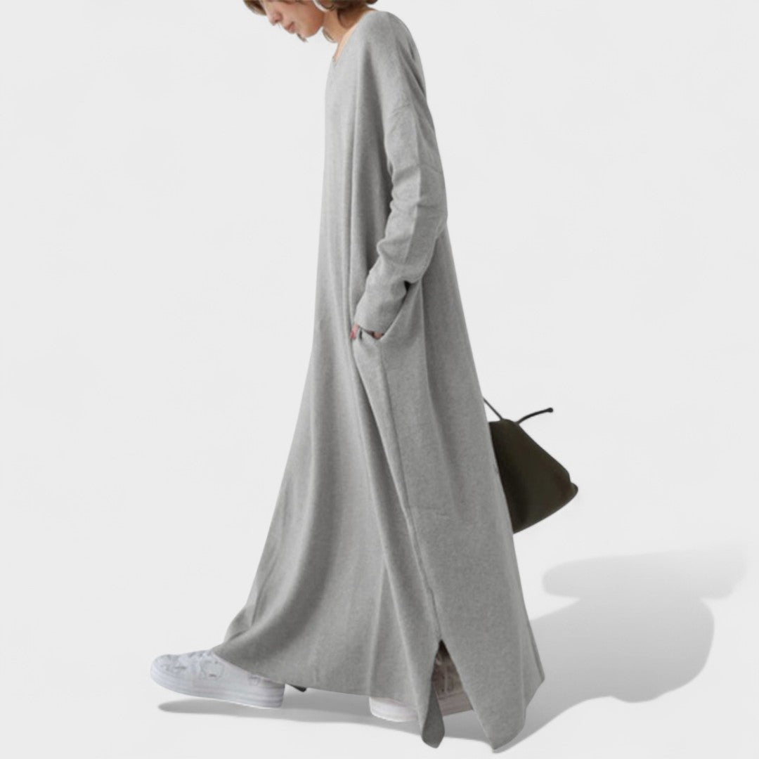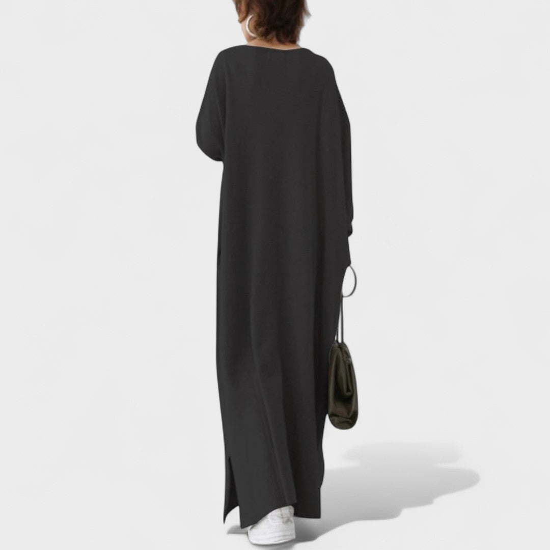 Este vestido foi pensado para quem valoriza conforto sem abdicar de estilo. O seu corte amplo e fluído garante liberdade total, enquanto o design minimalista permite criar looks versáteis, desde os mais casuais até aos mais sofisticados.