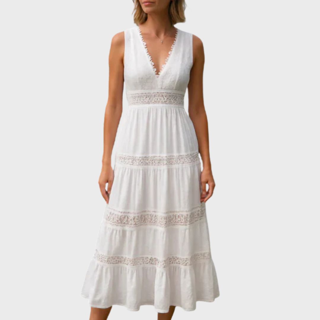 Camila | Vestido Midi Boho com Detalhes em Renda