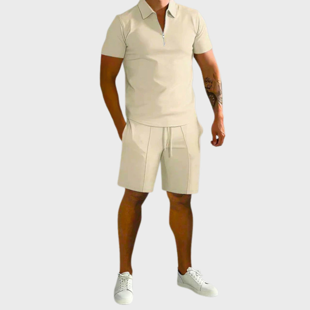 O conjunto Carlos combina polo e calções num estilo sofisticado mas descontraído, ideal para os dias mais quentes. Versátil e moderno, adapta-se facilmente a diferentes ocasiões, desde encontros casuais a momentos mais elegantes de verão.