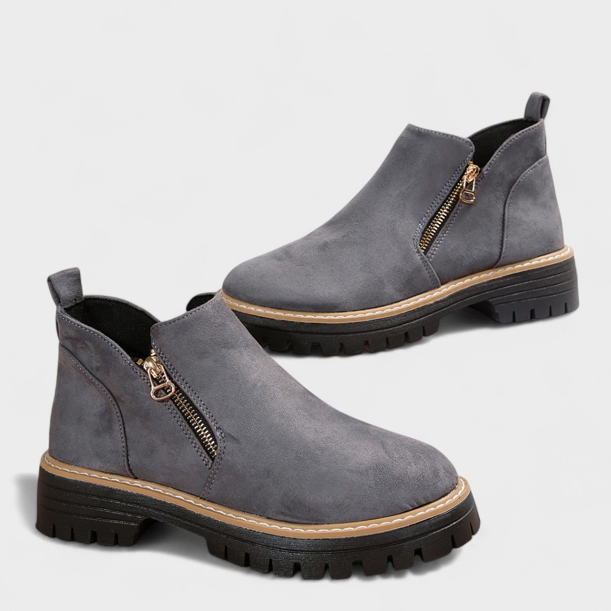 Sente-te confiante em cada passo com estas botas que unem conforto e atitude num design moderno e prático. Com um fecho lateral funcional e uma sola robusta, são perfeitas para o dia a dia, oferecendo estabilidade e um toque urbano que eleva qualquer look.