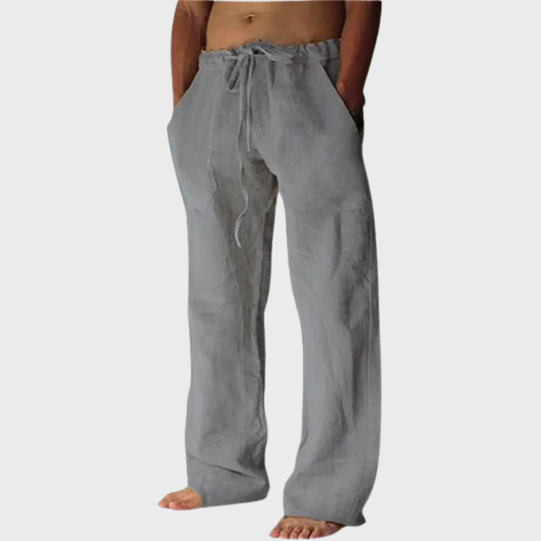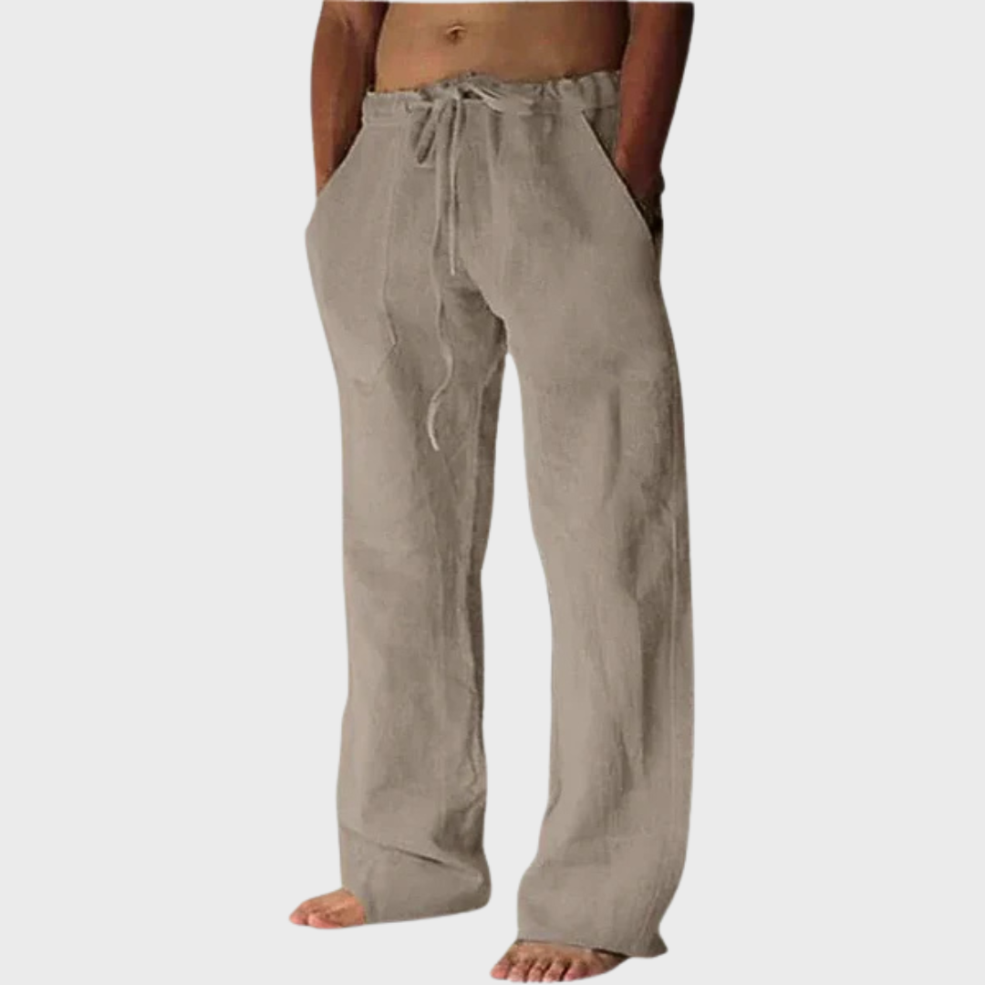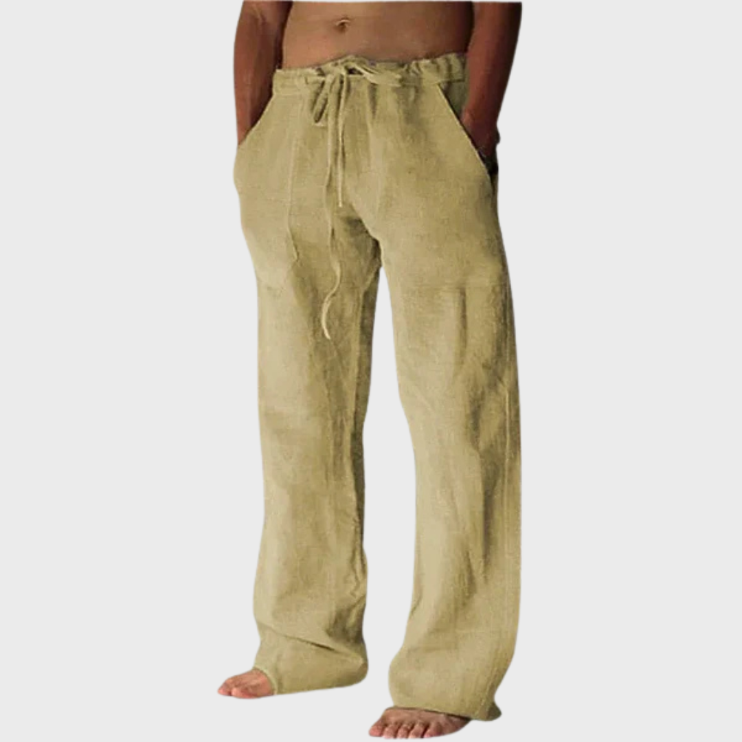 As Calças Tiago são a escolha ideal para quem procura frescura e estilo descontraído nos dias quentes. Com um corte relaxado e tecido leve em linho respirável, garantem conforto total – quer estejas de passeio pela cidade ou a relaxar ao fim de semana.
