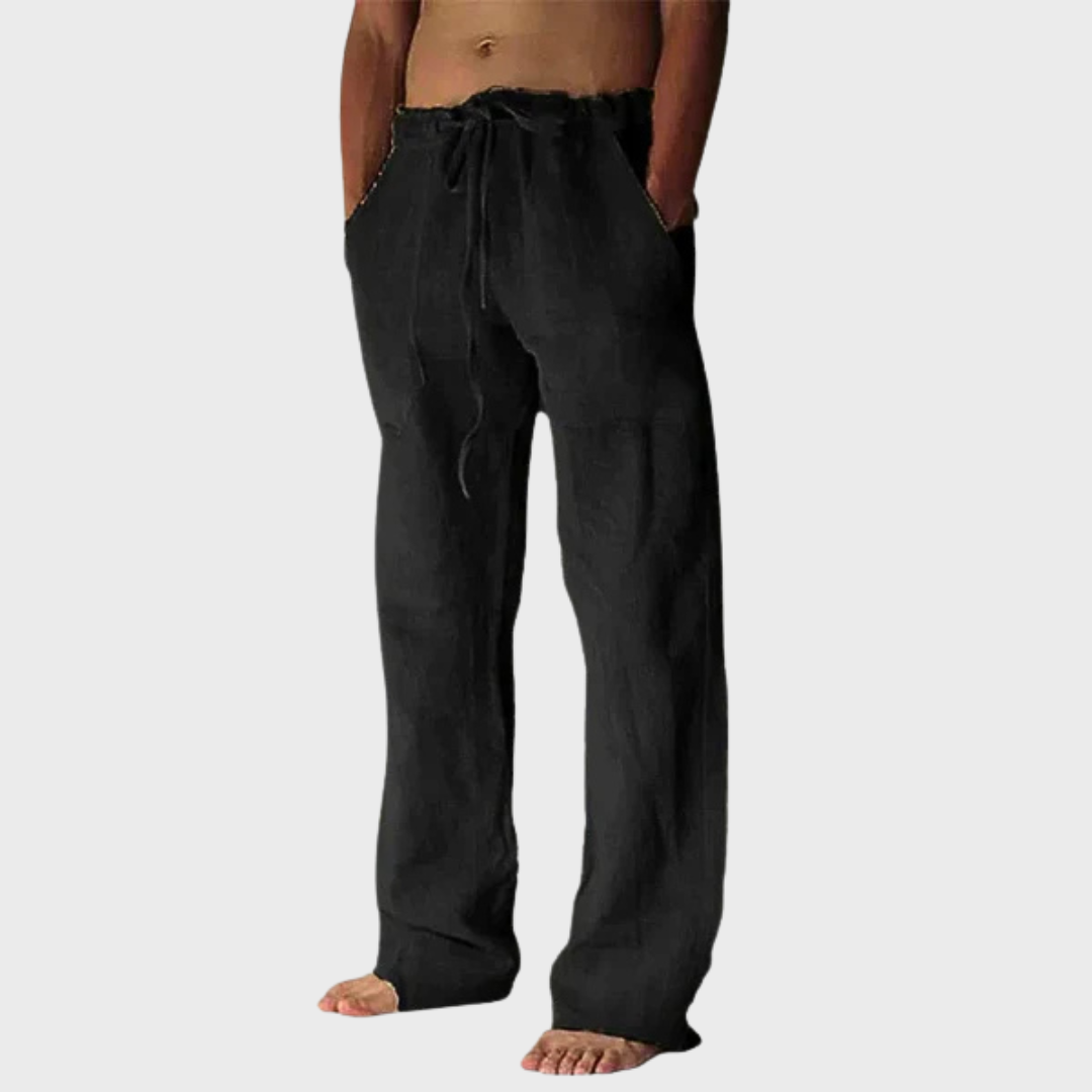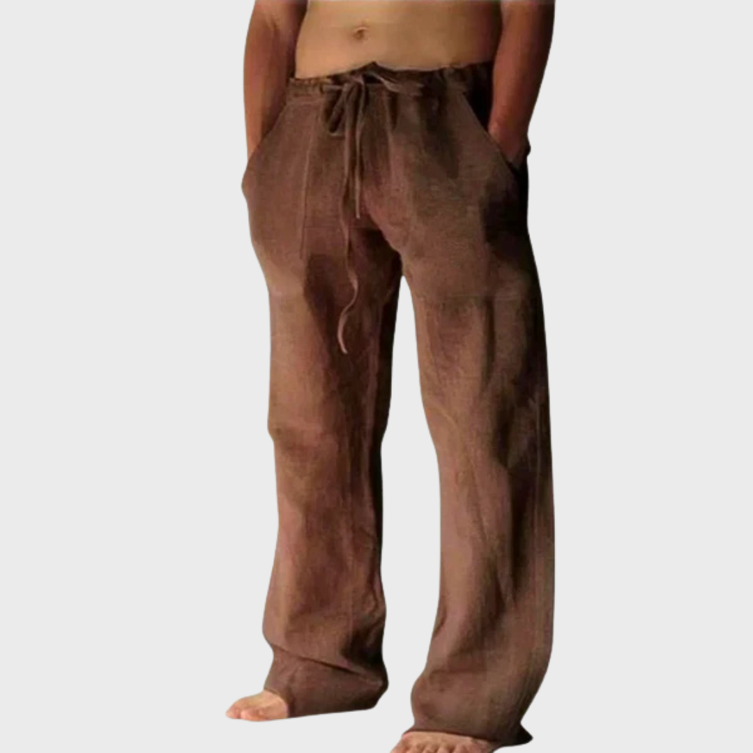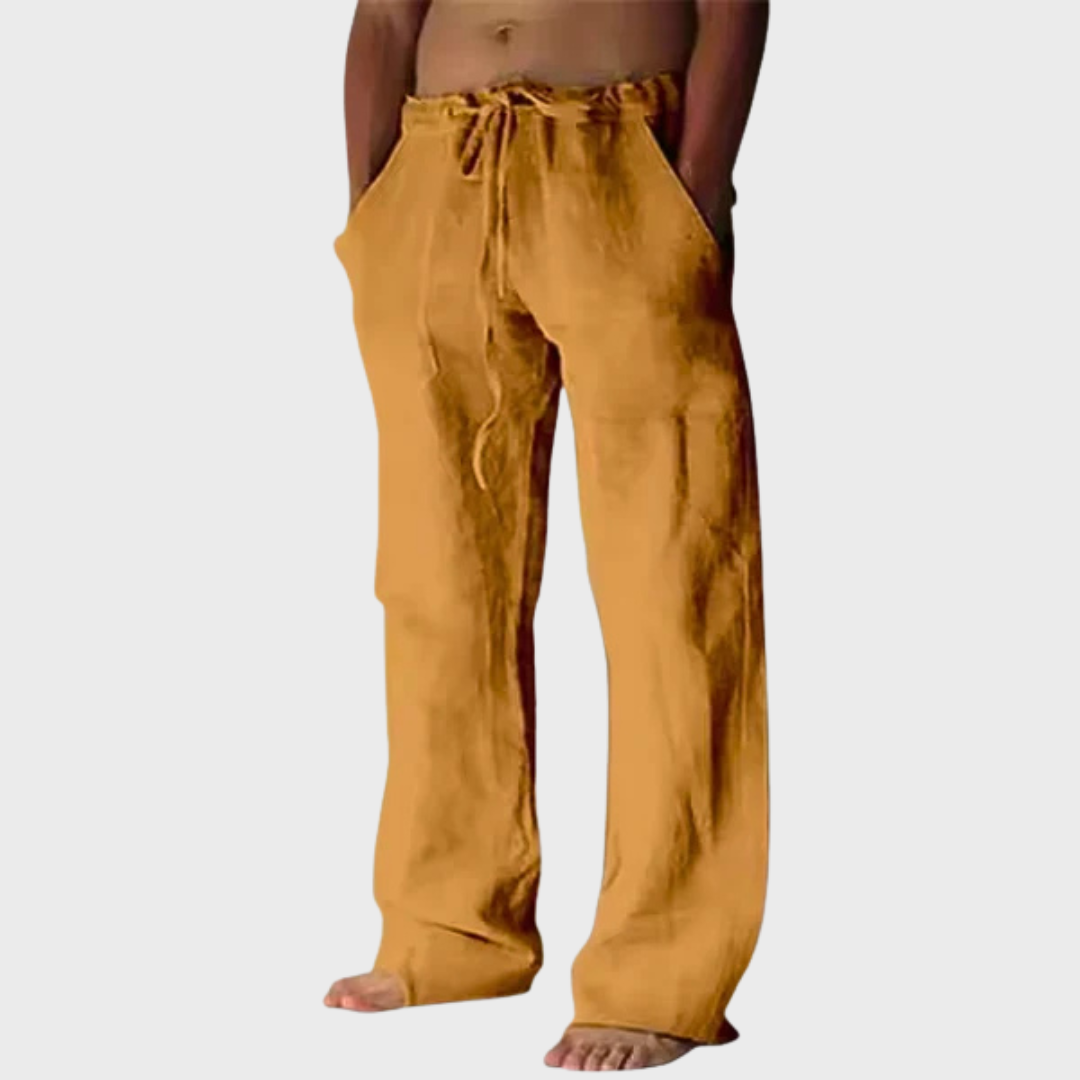 As Calças Tiago são a escolha ideal para quem procura frescura e estilo descontraído nos dias quentes. Com um corte relaxado e tecido leve em linho respirável, garantem conforto total – quer estejas de passeio pela cidade ou a relaxar ao fim de semana.